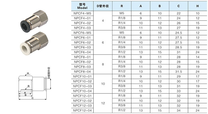 NPCF内螺纹直通