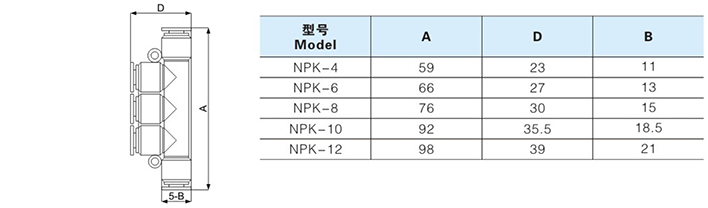 快插式气动接头系列选型尺寸图