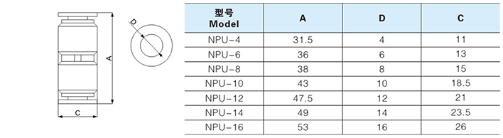 快插式气动接头系列选型尺寸图